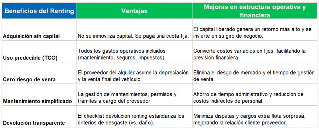 - Protección del activo: Mantener el valor residual del vehículo mediante un checklist devolución renting por estricto.